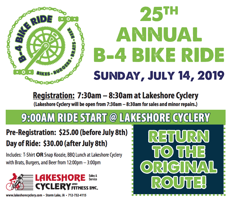 Location: Lakeshore Cyclery1523 E. Lakeshore Dr.Storm Lake, IA 50588