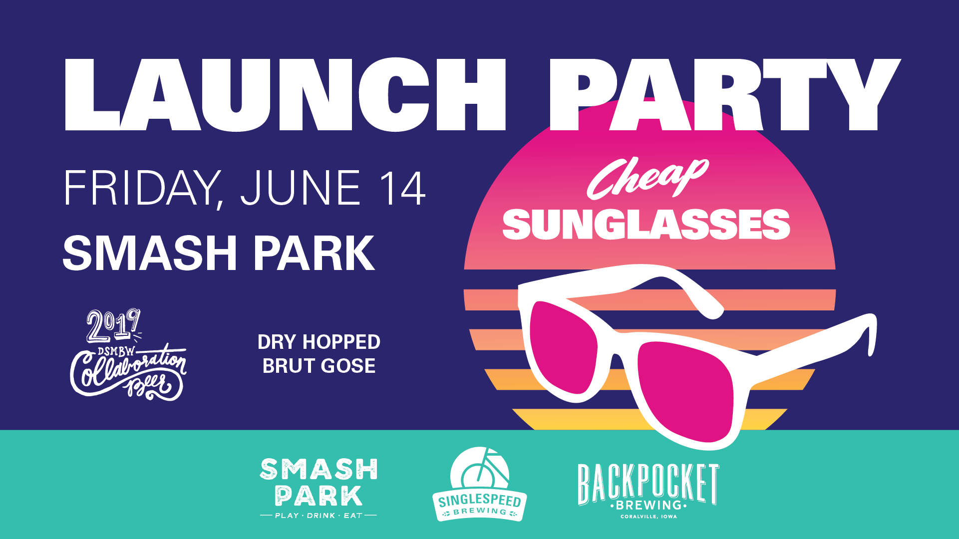 In honor of Des Moines Beer Week we have partnered up with Backpocket Brewing Co. to bring you a Dry Hopped Brut Gose, Cheap Sunglasses. Help us kick off DSMBW with our Cheap Sunglasses Launch Party at Smash Park on Friday, June 14th! Together we will be hosting a pickleball tournament, playing games, and passing out swag. The fun will start at 6pm with Pickleball and sign up starting a 5pm.