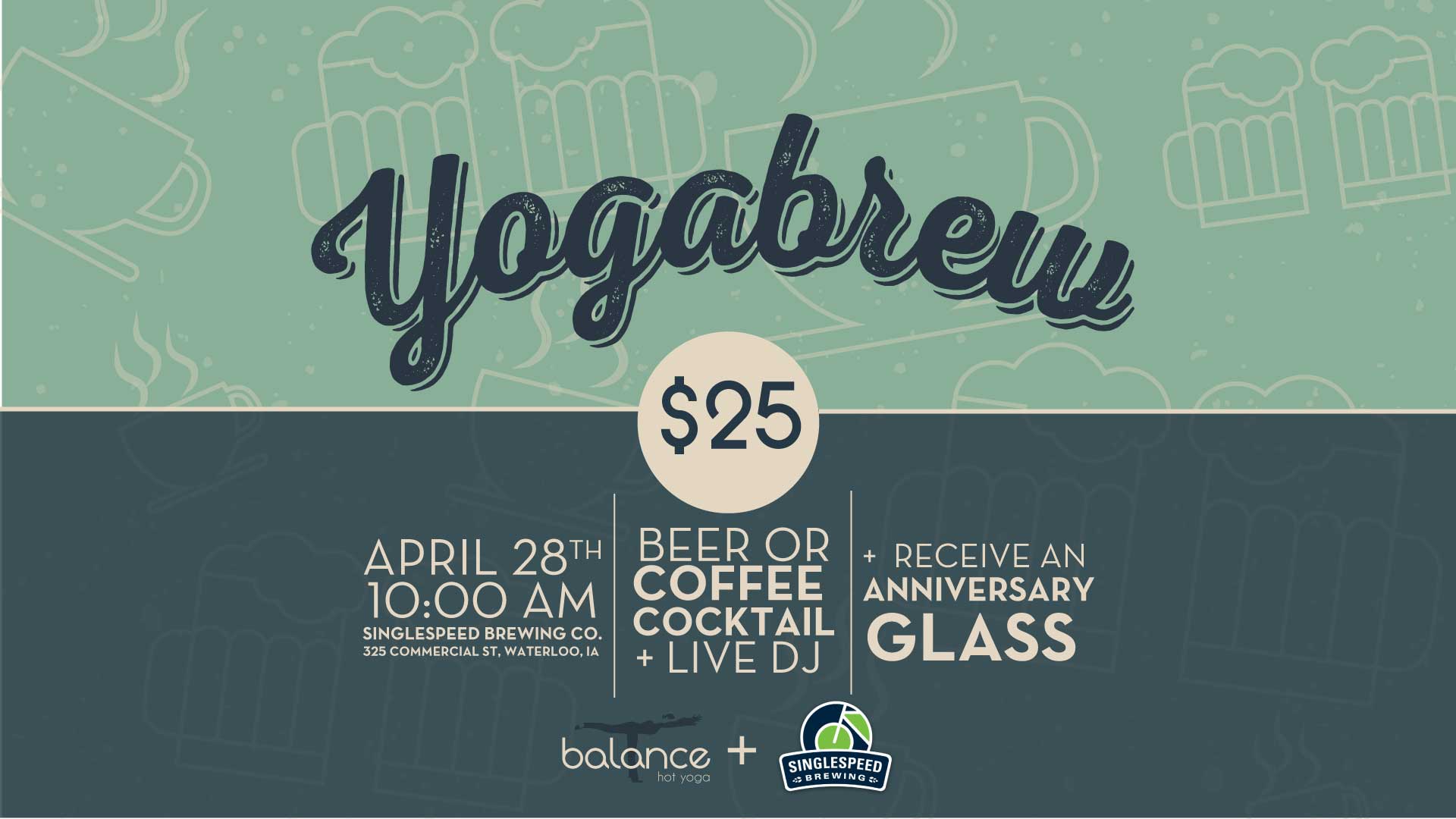 YogaBrew with Balance Hot Yoga at 10:00am w/ live mixed tunes by DJ Jumpsuit.
